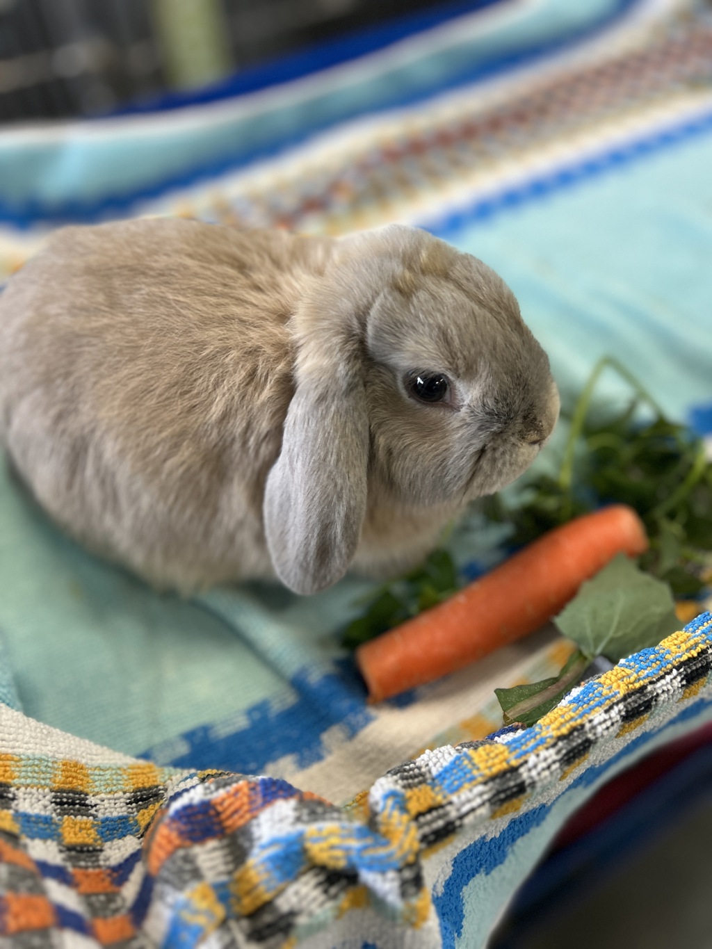 Say hello to Hummus, a sweet, soft-natured bunny who's been through a lot but still has so much love to give. She can be a little unsure in new situations, but once she feels safe, her gentle personality starts to shine.