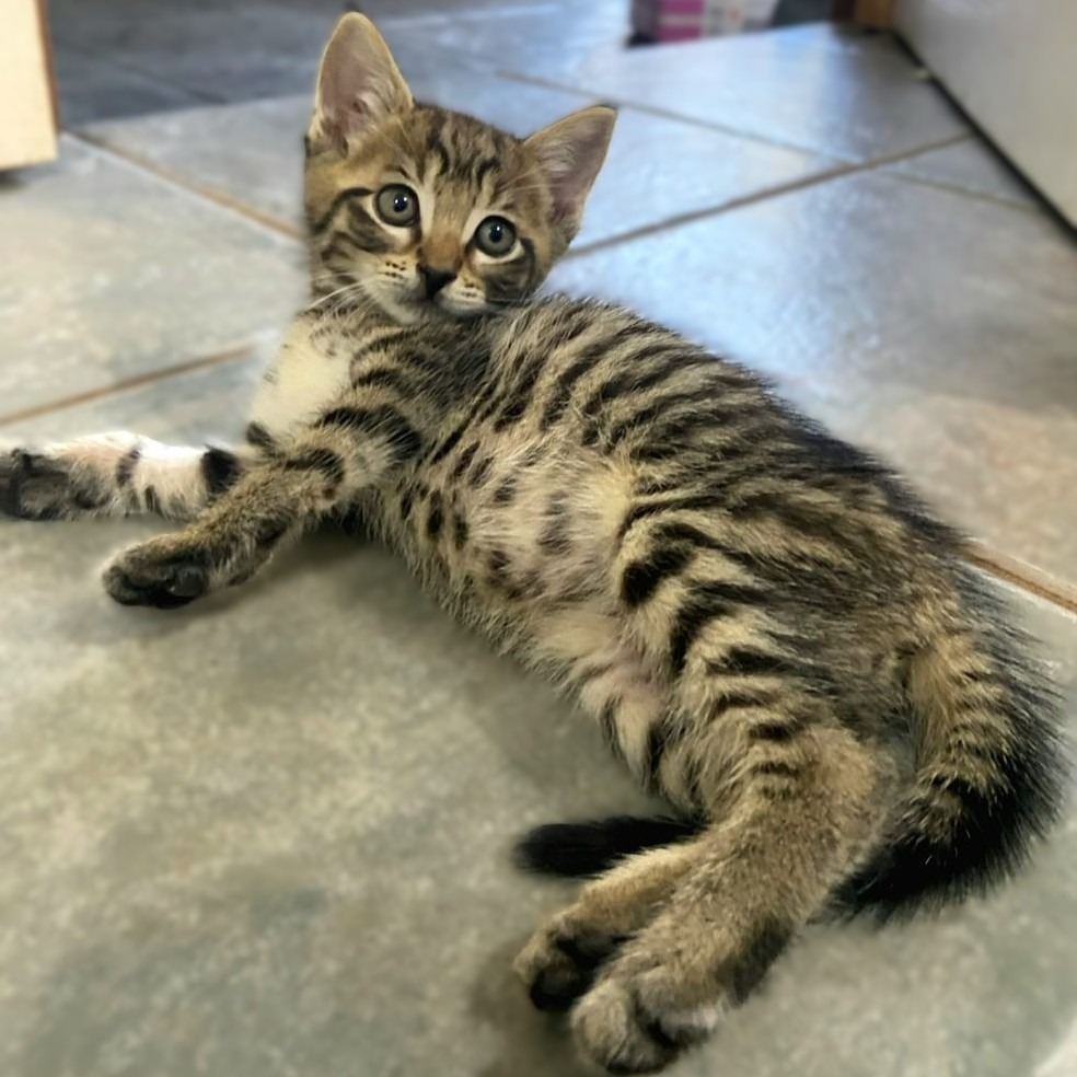 Xander is the definition of a chilled, affectionate kitten. He’s calm, quiet, and loves nothing more than being close to his humans. This gentle boy doesn’t even mind baths and takes everything in his stride with his sweet, easy-going nature. He is also trying desperately to be best friends with his foster puppy sibling so would probably love a cat friendly dog to hang out with!