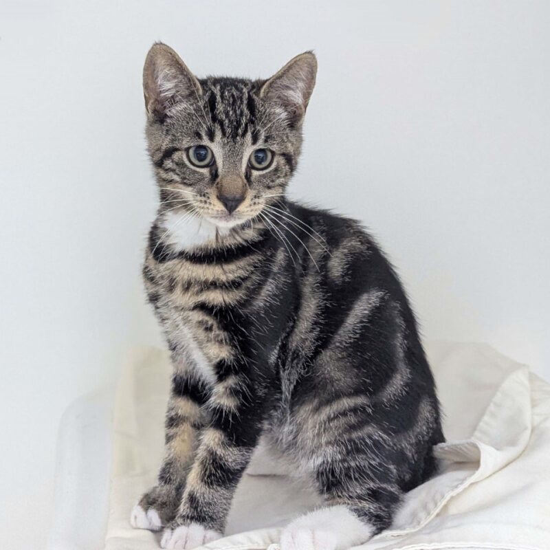 Hi, I’m Poncho. I’m a male Domestic Short Hair kitten, about 3 months old. My energy is average—I love a little play, a quick chase after a feather wand, then a cozy nap in a sunny window. I’m curious, friendly, and I purr easily when you stroke my fur. I’m learning all the basics—litter box, scratching posts, and gentle petting—so I’ll do best with a patient, loving family who enjoys a growing kitten. I’d adore a home with kids or adults who can give me daily attention and playtime. Best with Children Aged: No known child related issues. I’m a loyal, affectionate teammate who will grow into a calm, confident cat with your love and guidance. If you’re looking for a sweet little companion to brighten your days, I’m your guy. Adopt Poncho, and let’s start our happy life together.