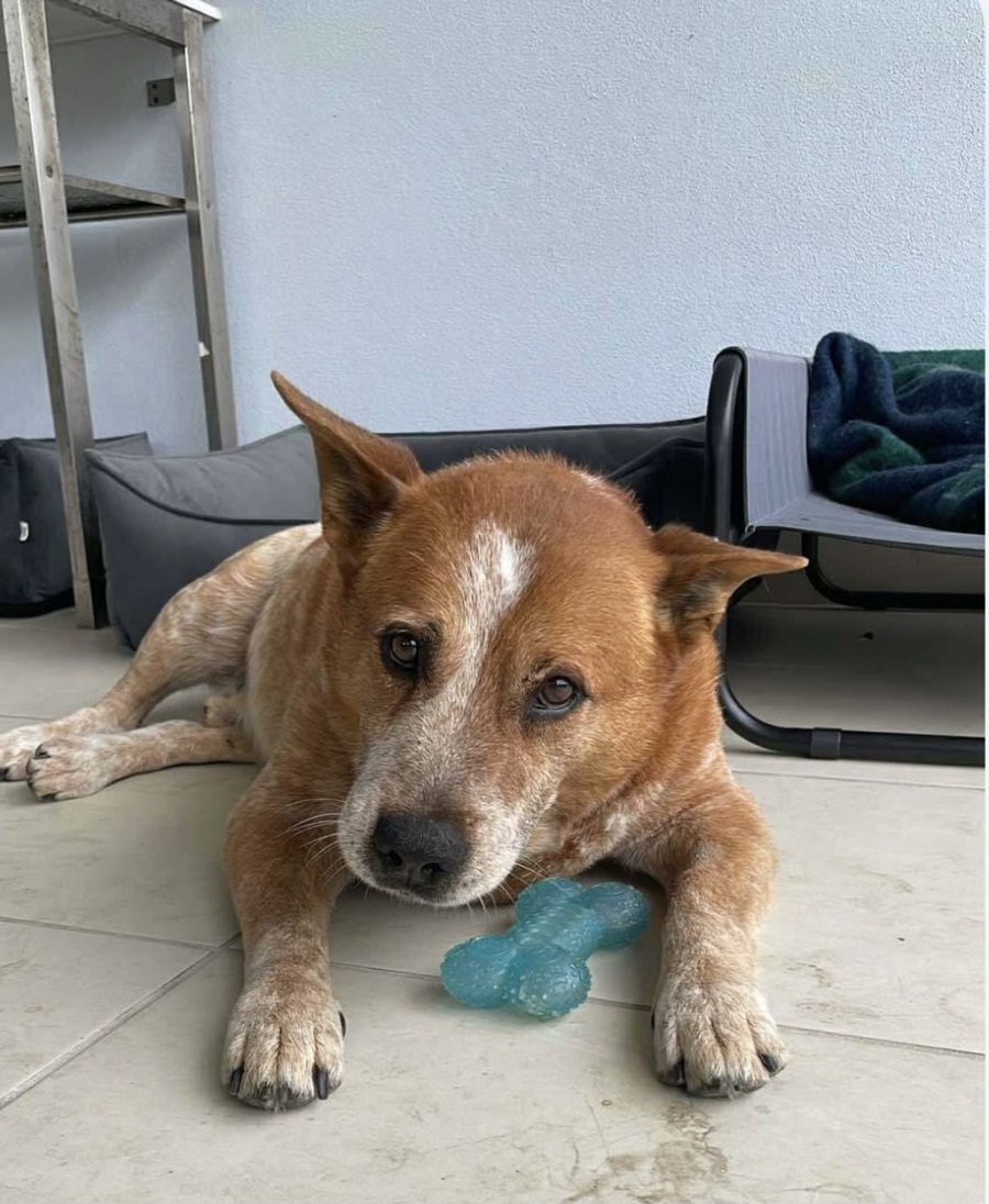 He is an absolute sweetheart and a delight to have around the house. He had learnt to use the doggie door but will stick to you like Velcro if you are home, he is the most loyal boy!