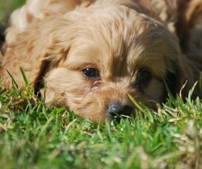 a playful little tyke who really enjoys exploring her yard and home. She gambles around with the cute puppy frolic, tail wagging all the time and just loving life. She loves playing with her toys and will trip over herself with excitement to get to them. She makes the sweetest "playgrowl" noises as she shakes her teddy and toys and plays with her siblings. Mikaela is accustomed to being on the grooming table, and has been groomed regularly since she was only a fewweeks old. Mikaela is 8 weeks old and a cavalier king charles spaniel cross miniature poodle. Mikaela has her own webpage a http://nswar. Org. Au/mikaela. Htm