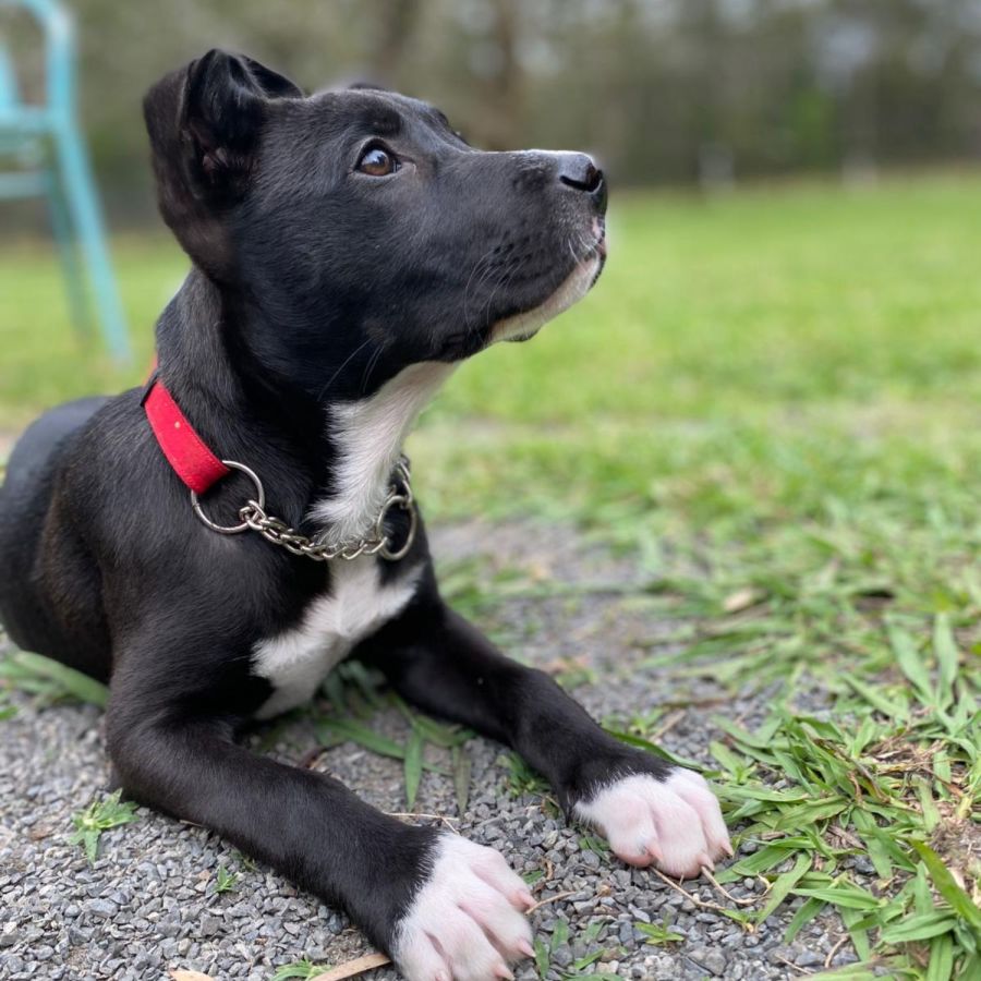 Jazz is a sweet, calm, and quietly observant puppy who loves to roll onto her back for tummy tickles — often accompanied by her signature snorts, which are her most common form of communication! She’s affectionate, gentle, and always happy to meet other dogs. Jazz enjoys having her ears softly pulled through your fingers and will do just about anything for a treat. She’s growing quickly and is expected to be Medium-Large in size as an adult.