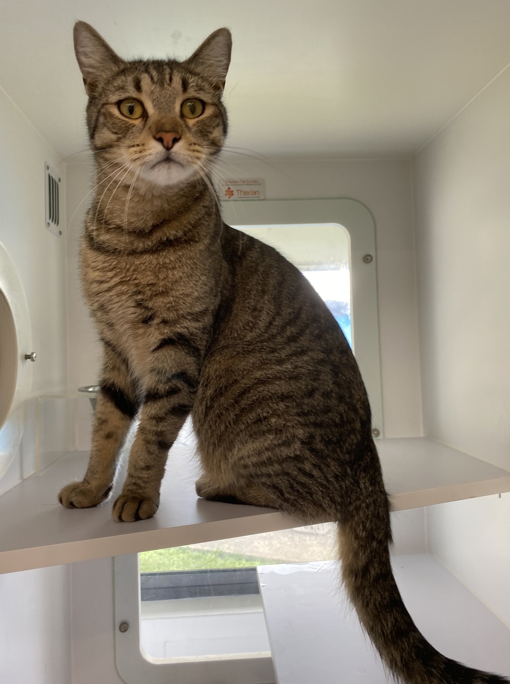 Meet Token, the charming little explorer with a heart full of curiosity and a tail full of confidence! This outgoing boy is on a mission to find his forever family, and he's bringing the entertainment. Whether he's perched like royalty on a tower or scaling a scratcher like a feline mountaineer, Token is always up for adventure. He's a professional people-watcher, a top-tier cuddle consultant, and a guaranteed mood booster. Token's ideal home includes cozy hideaways for when he needs a breather, plenty of playthings to keep his clever mind amused, and humans of all ages to adore him. First-time adopters? He's totally cool with that. Got other cats? With a proper intro, Token might just make a few furry friends! Ready to fall in love? Token's waiting to make your home his kingdom-with you as his favorite subject :)