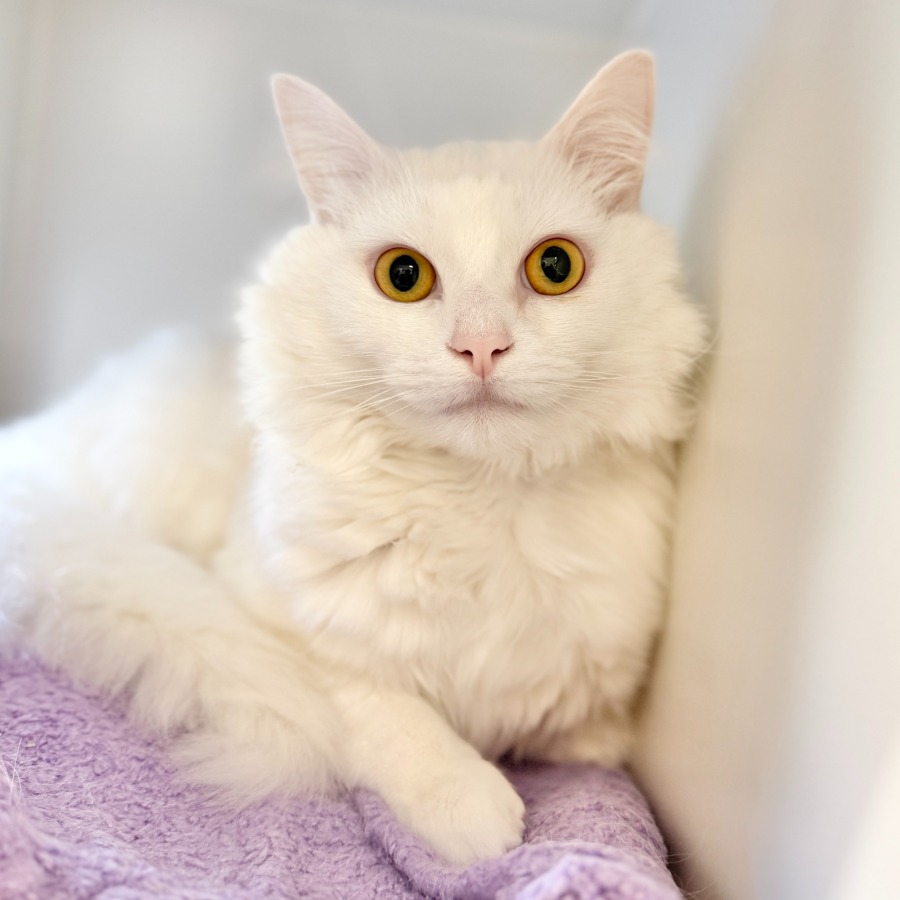 Meet Malfoy, a fluffy white bundle of love and gentleness. Sweet, affectionate, and calm, Malfoy adores quiet companionship and soft cuddles. His soft coat and gentle demeanor make him the perfect companion for anyone looking for a calm, loving friend.