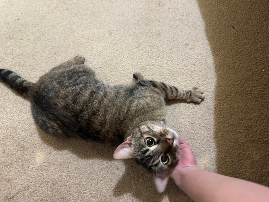 Aster is a low maintenance cat who will wander off and do her own thing during the day, typically snoozing in the cat tree. She likes to have some playtime during the evening and then likes to spend the night curled up with the resident cat. Unfortunately, the resident cat is not a fan, and poor little Aster keeps trying. She is very tolerant and patient as she tries to play, to chase, to snuggle, no matter how many times he rejects her.