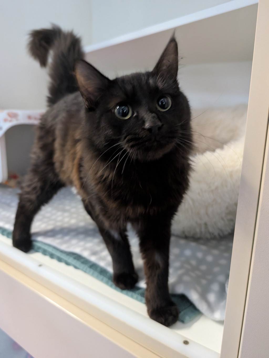 Say hello to Phantom, a 6-month-old bundle of silky black fluff and pure affection. Don't let his mysterious name fool you-this little man is all heart! Phantom loves to be near his people, whether he is curling up in your lap for a cozy nap or following you from room to room to be part of the action.