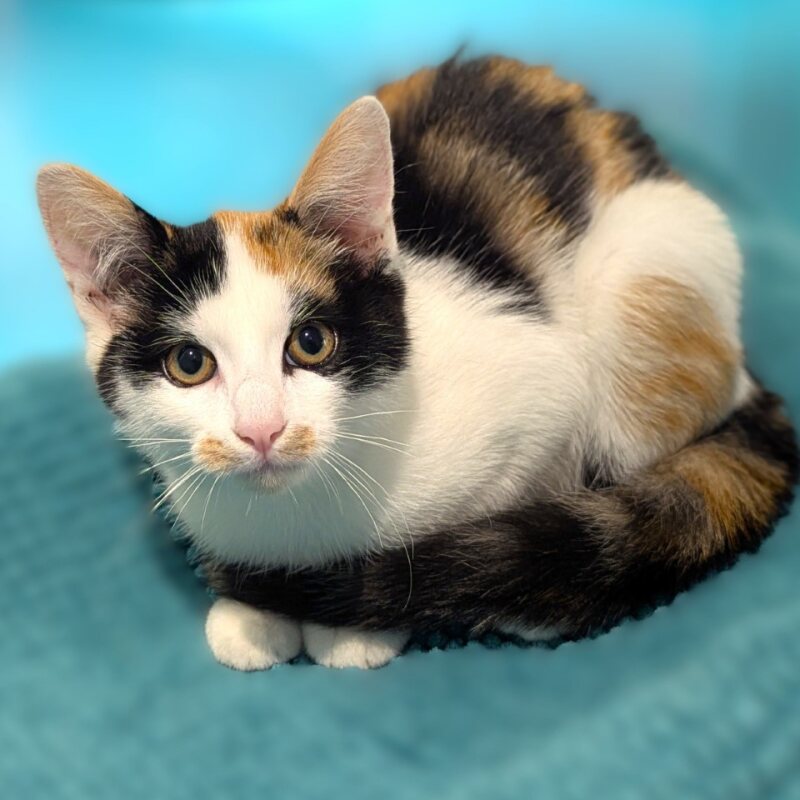 Hi, I'm Bubbles. I'm a female Domestic Short Hair kitten, and I’m ready to find a loving family. I’m 3 months old. My energy level is average—happy to play and explore, then I’ll happily curl up for a quiet cuddle. I’m curious, gentle, and quick to purr when you give me a comfy lap and a warm sunbeam. I’ve got plenty of kitten charm to share. Best with children aged: No known child related issues. I’m hoping for a home that’s patient and kind, where I can blossom at my own pace. A calm environment with gentle play will help me build confidence and trust. I promise to bring soft purrs, warm snuggles, and a little sparkle to each day. If you’re looking for a sweet, shy-at-first but loving companion who grows with you, I’d love to meet you. Ask to meet me—Bubbles, the newest member of your family.