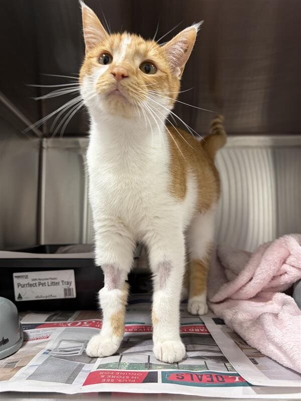 Hi, I’m Peach, a female Domestic Short Hair kitten. I’m 5 months old and full of curiosity. My energy level is average, so I’m happy to chase a string, nap in a sunbeam, and snuggle on your lap after a playful session. I’m a friendly, gentle little explorer who loves soft blankets, feather toys, and window-watching the world go by. I have no known issues with children, and I’m hoping for a patient family who can teach me good manners as I grow. A safe home with cozy spots, a scratching post, and regular vet care will help me blossom into a loving companion. If you’re looking for a sweet, affectionate kitten to complete your home, I’m ready to meet you. I’ll bring purrs, warmth, and a dash of whimsy wherever I go.