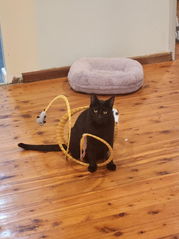 Are you looking for a gentle, loving companion to fill your home with warmth and purrs? Look no further than Nougat, a beautiful black kitty with a heart full of love and a spirit ready to shine. This affectionate boy is the total package, friendly, cuddly and always ready to nuzzle his way into your heart. Nougat adores being around people and thrives on connection. He'll greet you with soft meows, rub up against your legs, bat your hands gently in the morning to let you know breakfast is late and curl up behind you at night for cozy snuggles. But what truly makes Nougat special is his loving nature with other cats. He's a social butterfly who gets along wonderfully with feline friends and would be happiest in a home with another cat companion (or two!). Whether its playtime or naptime, he's all about friendship and comfort. After a rough start in life, Nougat is hoping for a fresh start - a safe, loving home where he can finally relax and be cherished. He's not just looking for a home, he's dreaming of a happily ever after with someone who has patience, experience and sees him for the gentle soul he is. Could that someone be you? Adopt today and let Nougat show you how beautiful second chances can be.