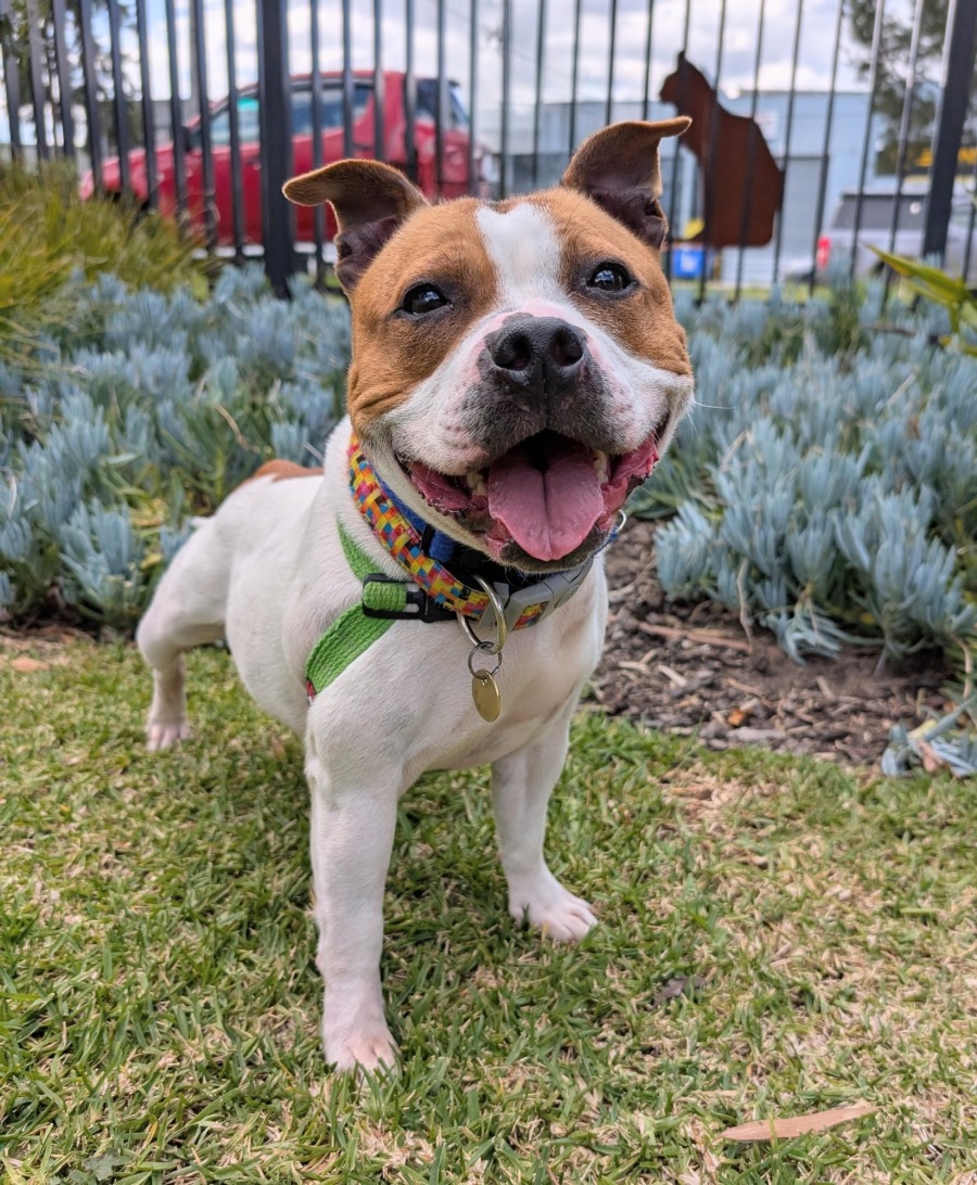 Say hello to Gracie, a spirited little English Staffordshire bursting with love and the biggest smile!