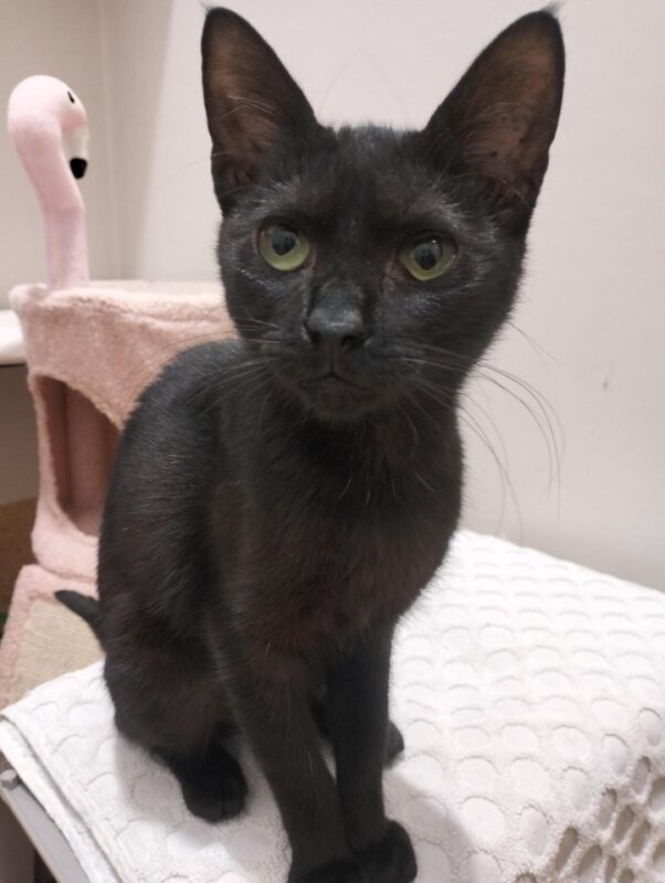 Evie is a beautifu; young girl on the hunt for her furever home and furever fmily. She can be a little shy to begin with, but once she warms up to you and gets to know you, she is a little love bug. When she first goes home, she will need her own room just to settle into, so that she can get used to the sounds and smells and this gives you time to go in and bond with her, while she is settling in. She will need toys and stringed toys to help keep her entertasined as well as a sratching post, litter tray and a comfy bed to call her own. She has no known issues with children, but she isnt comfortable being handled too much around the head area. Being a little shy she will be best suited to a quiet home, where she can settle in and find a sunny spot in the window.