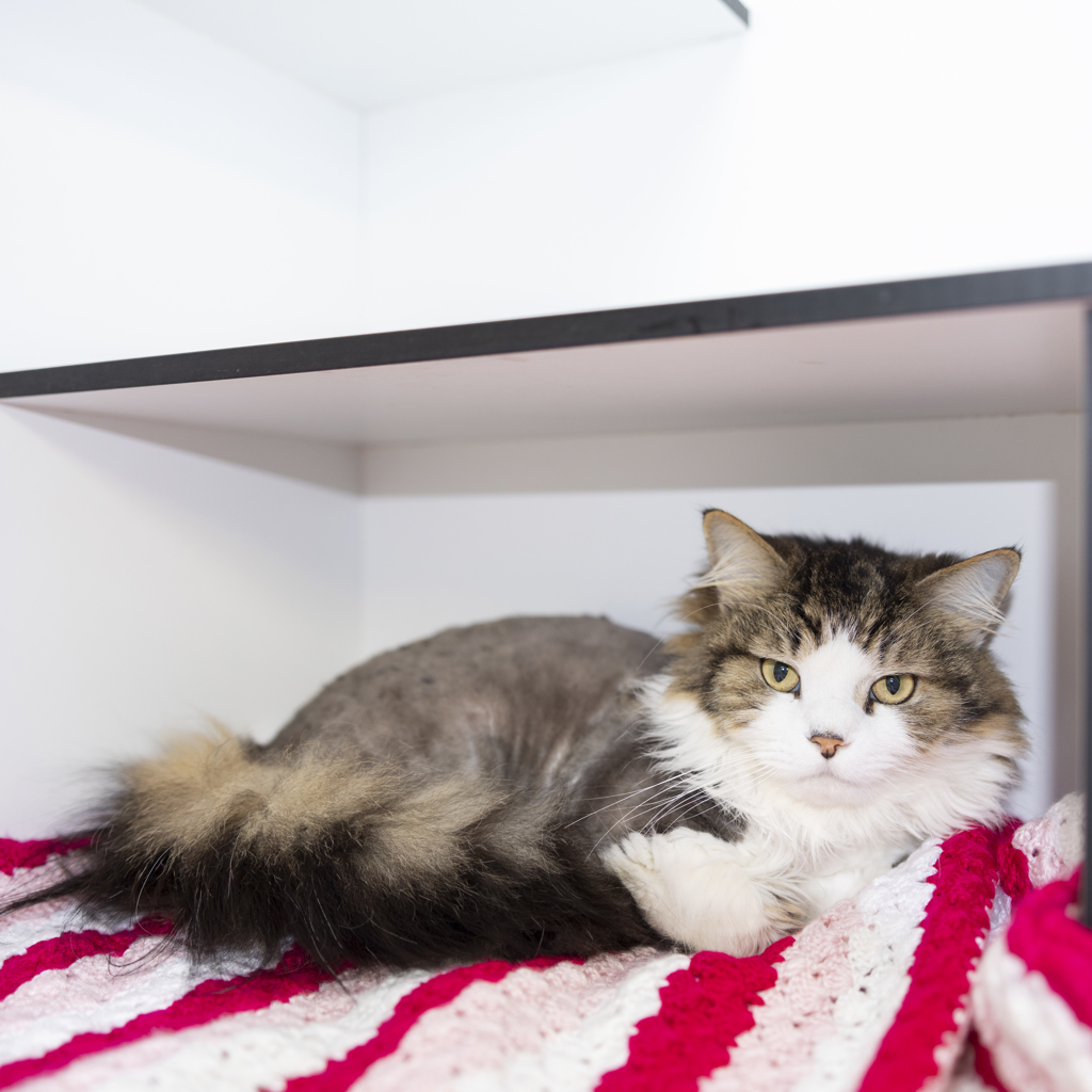 Yogi is an 5-year-old gentleman with soft, medium-length fur and the sweetest soul. This handsome boy is a little shy at first, but once he feels safe, his gentle personality truly shines. Yogi enjoys quiet company and cozy spots where he can nap in peace.