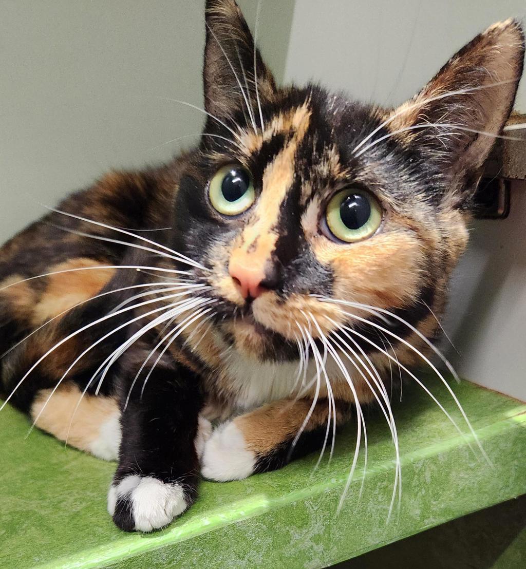 Lucinda thrives in a calm, quiet environment, so she would do best in a home with adults or cat-savvy teens who can give her the patience and space she needs to bloom. She will need a home with plenty of enrichment to keep her engaged and entertained indoors, as she enjoys exploring, playing, and observing her surroundings.
