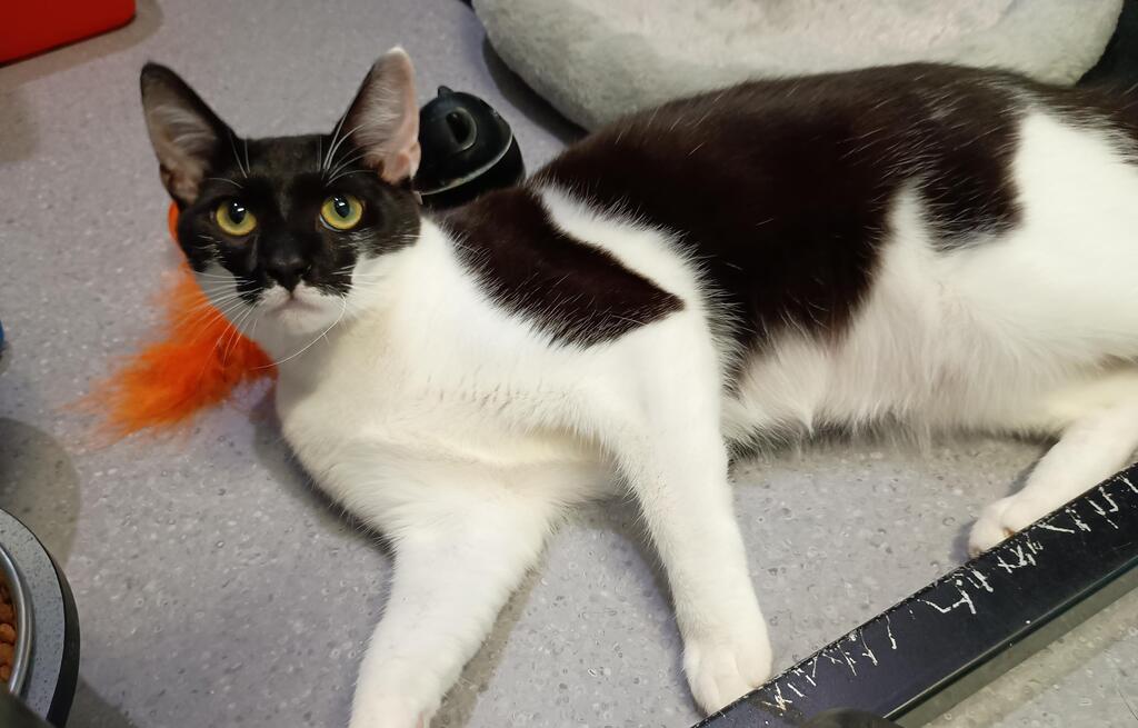 Meet Lola, a delightful young cat waiting for her forever home. Lola's personality is a vibrant mix of sweetness and curiosity. Her excitable nature is complemented by a playful and energetic spirit, and she's always ready for a cuddle or a game. Lola is also incredibly brave, facing new situations with a funny and fearless attitude. If you're looking for a loving and lively friend, Lola is the ideal choice to bring joy and laughter into your home.