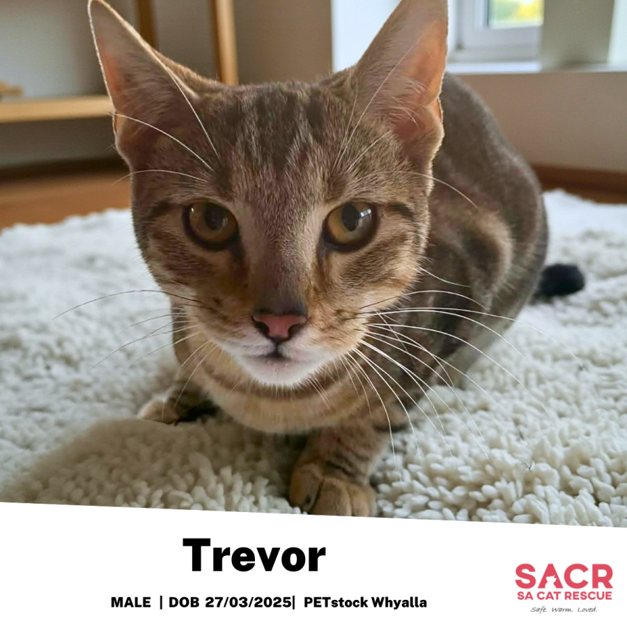 Trevor's adoption fee is $140 which includes desexing, microchipping, parasite prevention, and initial F3 vaccination.