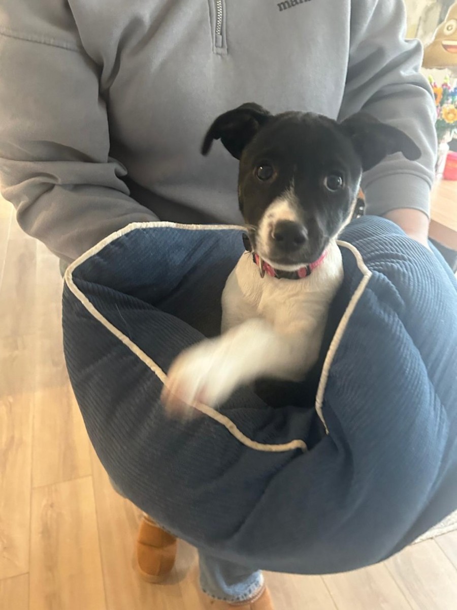 Her ideal home will have a warm place to curl up and take a nap, a lap is preferred but she isn't too fussy when it comes to nap time. Miss Piggy loves a good cuddle and wants to be a professional lap dog when she grows up!