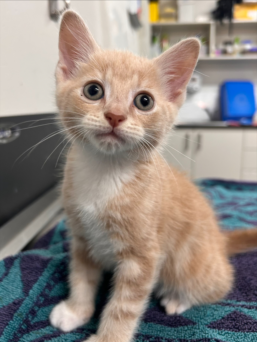 My sweet and loving personality is nothing like a dinosaur, so rest assured you are getting a lovely kitten if you adopt me. My litter mates and I had a rough start as strays but we were in great condition when we came to the RSPCA and have thrived in foster care. I am very friendly and purr readily, loving to be held and stroked. I am a gorgeous champagne colour and everyone thinks I am very handsome. While in foster care I easily got into routine and knew meal times, running to our playpen after running around the house playing. I am a smoochy kitten, happy to be with people. I also was in foster with cats and a small dog and had no fear, often trying to play with them too. My favourite toys are ball mazes and dangling toys because I like a challenge and I am very energetic. If that sounds like the perfect kitten for you, here I am!