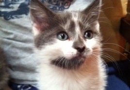 Hi my name is zohan and i am a cute 8 week old grey and white kitten looking for my forever home!