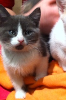 Hi my name is teddy and i am an 8 week old grey and white male kitten looking for my forever home!