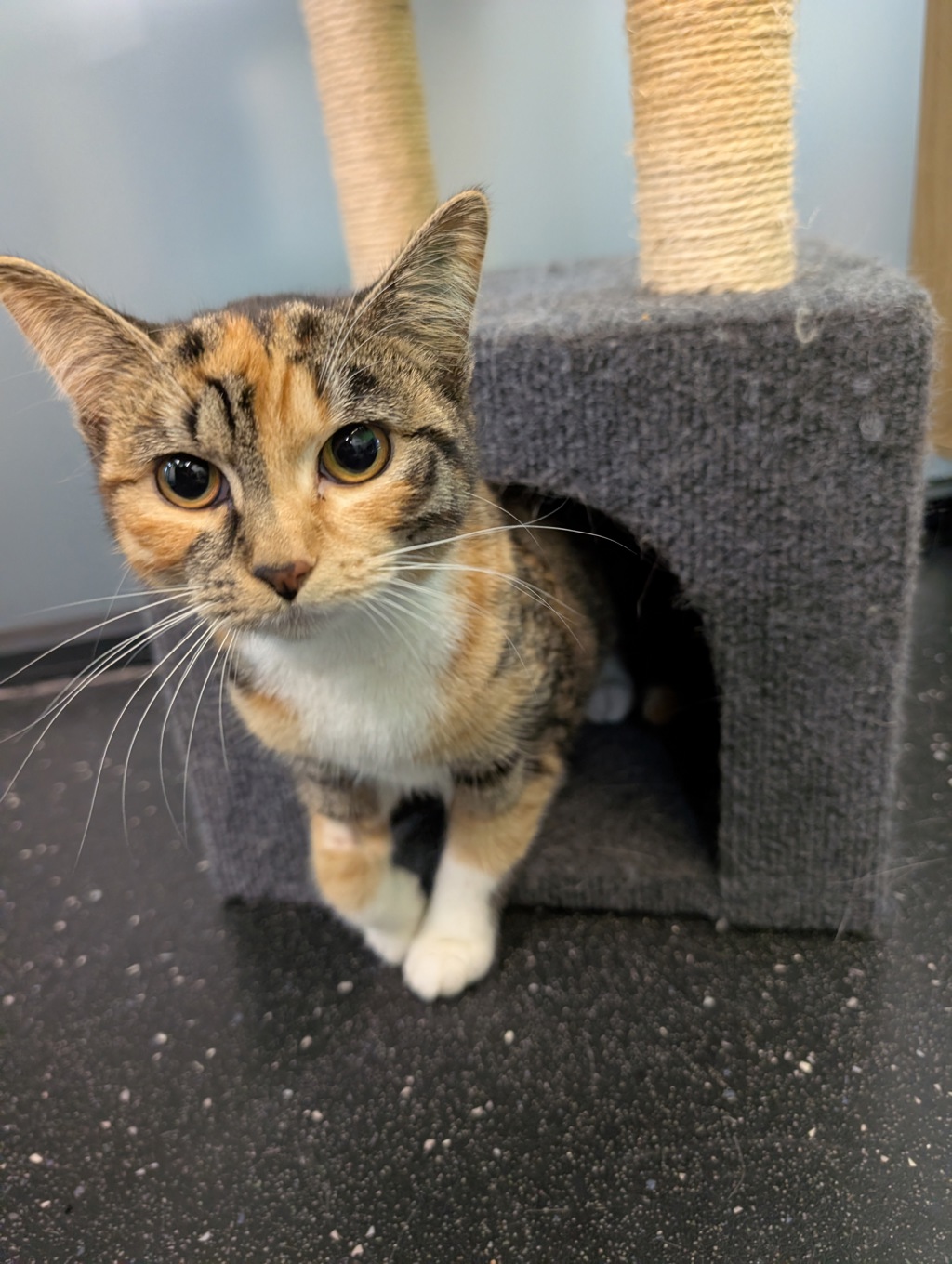 Tigger loves exploring her surroundings, batting at toys, and discovering new cozy spots to nap in. She's still young and has a touch of kitten energy, but she balances it beautifully with calm moments and gentle affection. Once she trusts you, she'll show her sweet and loving side - following you around quietly, offering soft purrs, and snuggling close when she's in the mood for love.