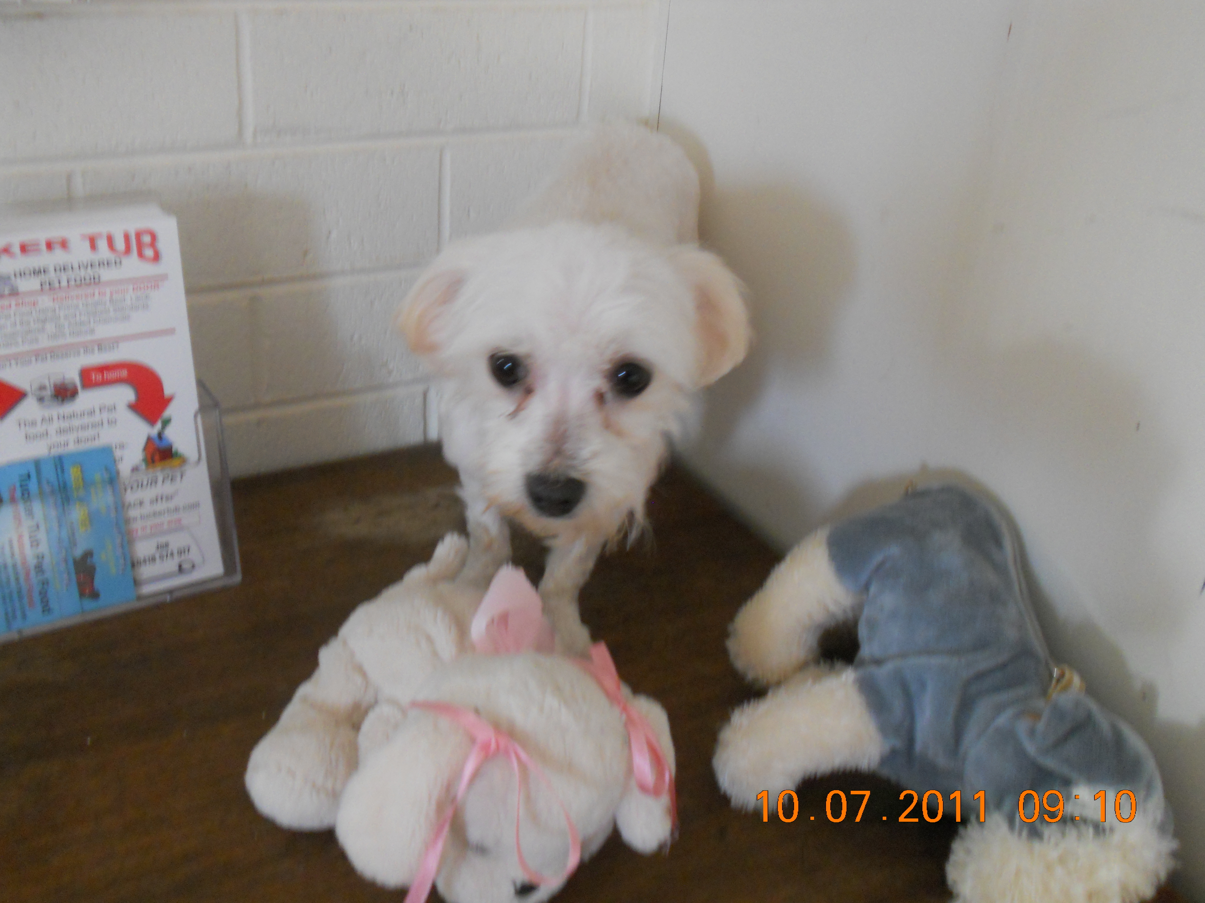 bubbles is a small maltese terrier. She requires a very special home as she has come from a puppy farm environment. She really wants to please but is not familiar with being picked up and cuddled. Small children will frighten her so a home with older children or adults would be ideal
