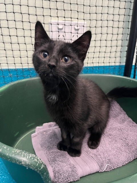 Hi, I’m Pudding. I’m a female Domestic Short Hair kitten, 2 months old. I’m an average-energy gal who loves sunny windows, soft blankets, and gentle play. I purr the moment you scoop me up for a cuddle. I’m curious, affectionate, and I’m learning how to be a good little companion. I’m good with people and I’m good with children—no known issues there—and I’d love a calm, loving home where I can grow and explore. I’ll become a loyal little buddy who adores daily cuddles and safe play. I’m adaptable and eager to please, and I’ll fit into many families with patience and care. If you’re looking for a sweet, approachable kitten to brighten your days, I’d love to meet you. I’m Pudding, a Domestic Short Hair kitten, ready to hop into your heart and your home.