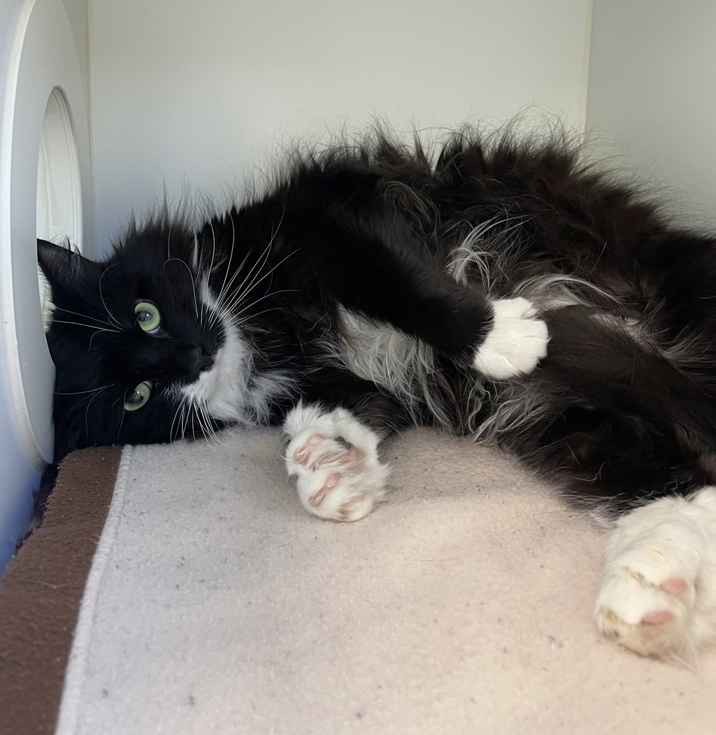 Her ideal adopter will have experience with shy cats and understand the importance of gentle encouragement and patience to help her continue building confidence. Regular brushing sessions will keep her coat beautiful and also serve as a lovely bonding time. Maggie would be happiest living indoors, with plenty of enrichment, cozy spots, and high perches where she can quietly observe her surroundings.