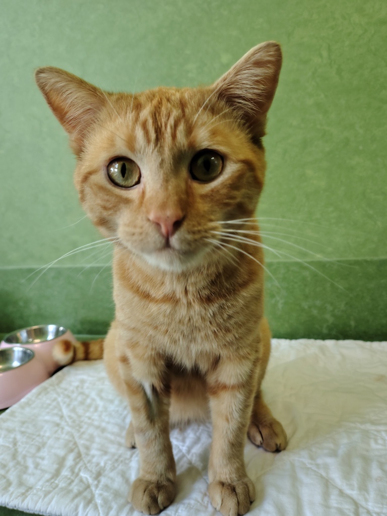 Meet Pear! Pear may take a little time to warm up, but once he feels safe, he shows his sweet and affectionate side. He enjoys quiet company, cozy naps, and gentle pets from his favourite humans.
