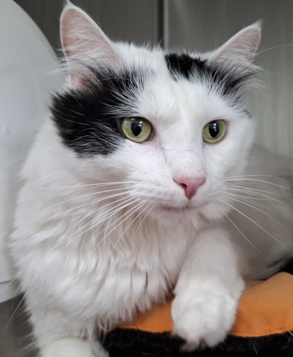 He has only ever lived indoors, so is looking for an inside only home that can continue keeping him feeling safe and protected, especially due to his light features.
