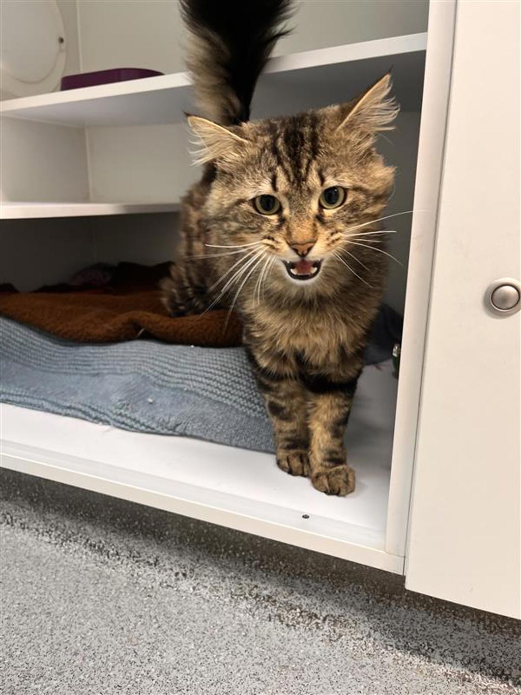 Kruegar is our little "confusing cat" - full of quirks, charm and personality! He greets people with adorable meows, is endlessly curious, and is always on the lookout for fun. This active boy would thrive in a loving home that can match his energy and keep him entertained.