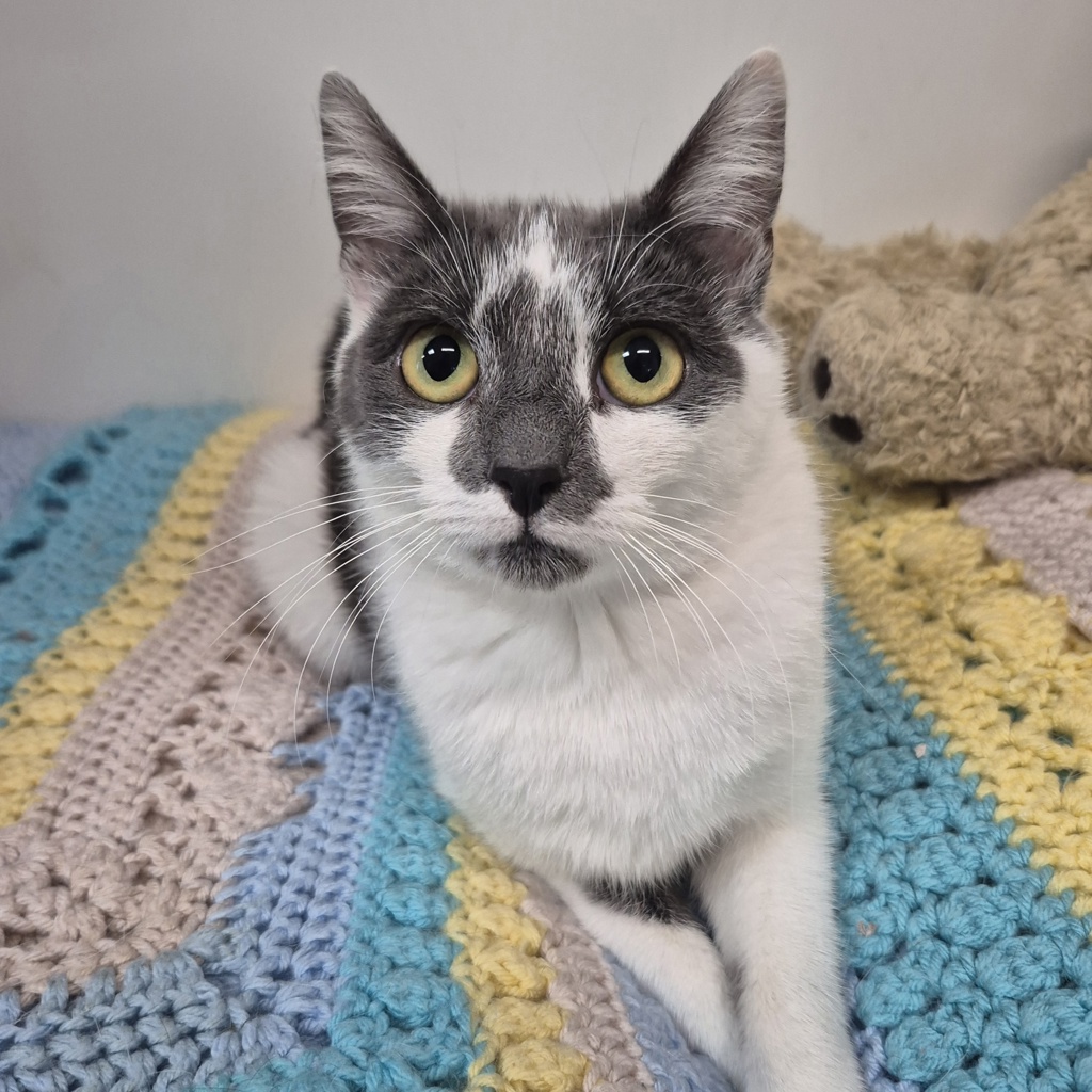 Mazda is a sweet young cat in need of a calm, quiet home and a gentle heart. She's very shy and still figuring out that people can be safe, but she allows gentle pats and is slowly starting to trust. With some time, love and patience, we know Mazda will blossom into a loving little companion.