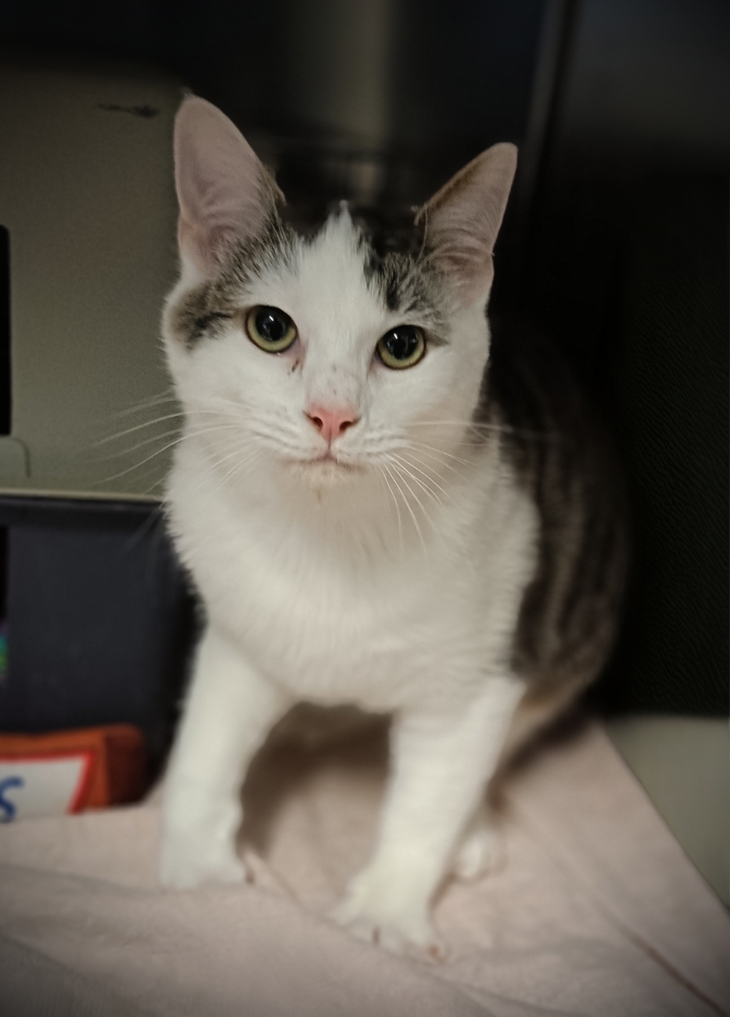 Meet Ming, a male tabby and white older kitten who is wonderfully shy. Rescued from a colony situation, he arrived with limited handling but has gradually learned to trust people and now enjoys gentle pats and affection as his comfort grows. He's a tidy, well-mannered boy who takes his time to settle in, and the affection he offers once he warms up is truly heartwarming.