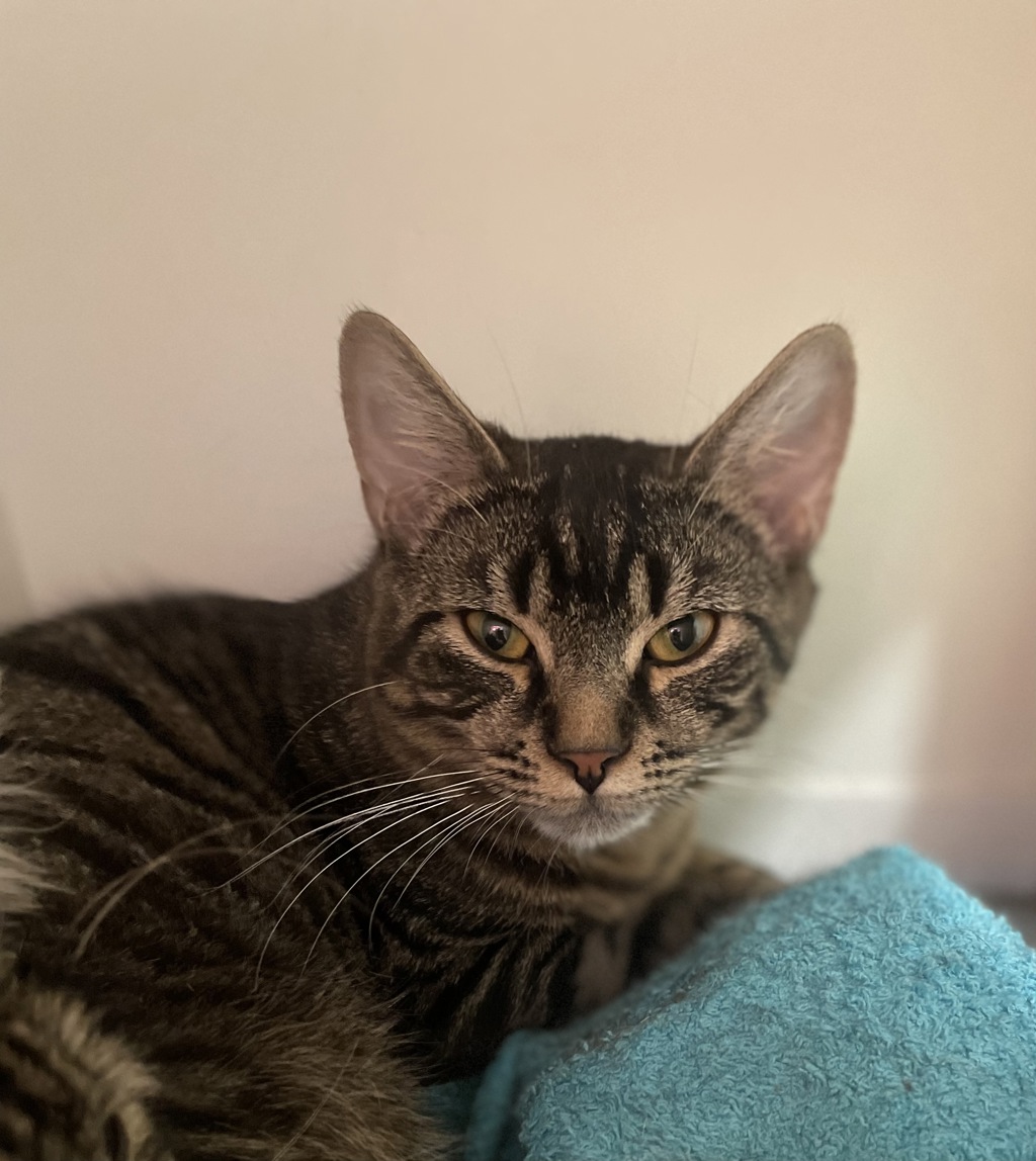 He'd love a calm home where he can relax and perhaps share space with another friendly feline companion. If you're looking for a loyal, low-key cat with a wise and watchful nature, Colonel Mustard might just be the perfect match!