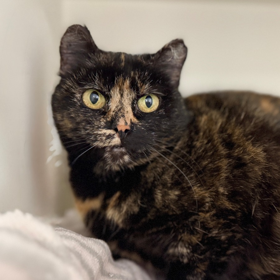 Zelda is a stunning dark tortoiseshell beauty with soulful eyes and a heart full of quiet love. She might not be the first to rush over when you walk in the room — but give her a little time, and you’ll discover one of the most affectionate companions you could ask for.