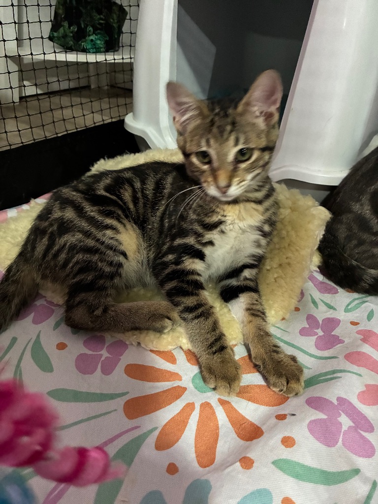 This handsome lad is already towering over his siblings and loving every second of being the “big brother” of the bunch. Enzo is full of playful energy: he chases toys with determination, zooms after anything that moves, and brings a burst of fun to every room he enters.