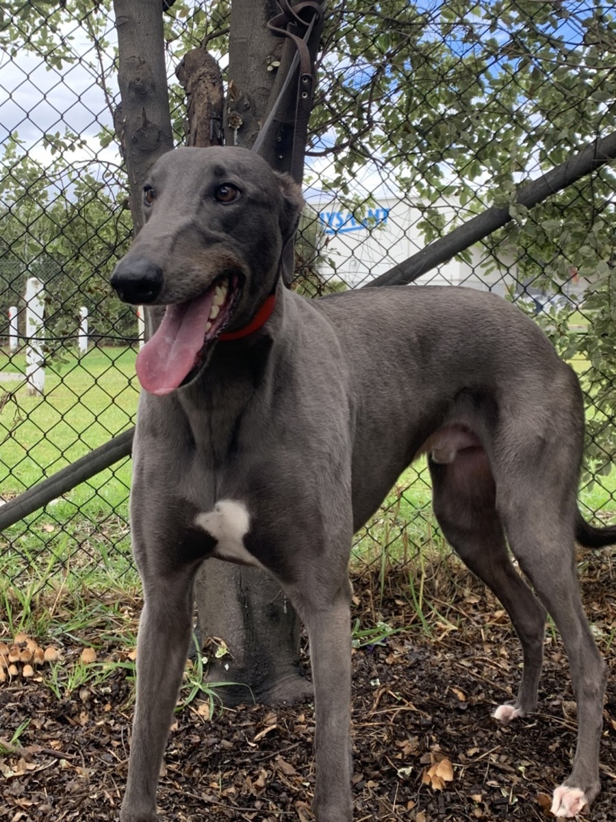 Meet Tommy - a 3-year-old Greyhound who's as gentle as he is handsome. A impressive steel grey man coming in at 38kgs, healthy and sleek. Surrendered through no fault of his own, Tommy is a sweet and affectionate boy who loves nothing more than a calm walk and good company. He's great with other dogs although we do not know if he has lived with other pets, he may suit a calm adult dog that shares his easygoing vibe. Tommy walks beautifully on lead and is looking for a family who understands the Greyhound breed and can offer him a peaceful, loving home. Tommy is house trained and has domestic home life experience , he is said to be calm and lazy around the home. Tommy cannot manage stairs at this stage but is willing to practice. He may suit older kids aged 13+, but isn't suited to cats or pocket pets. Please submit an application via our website.