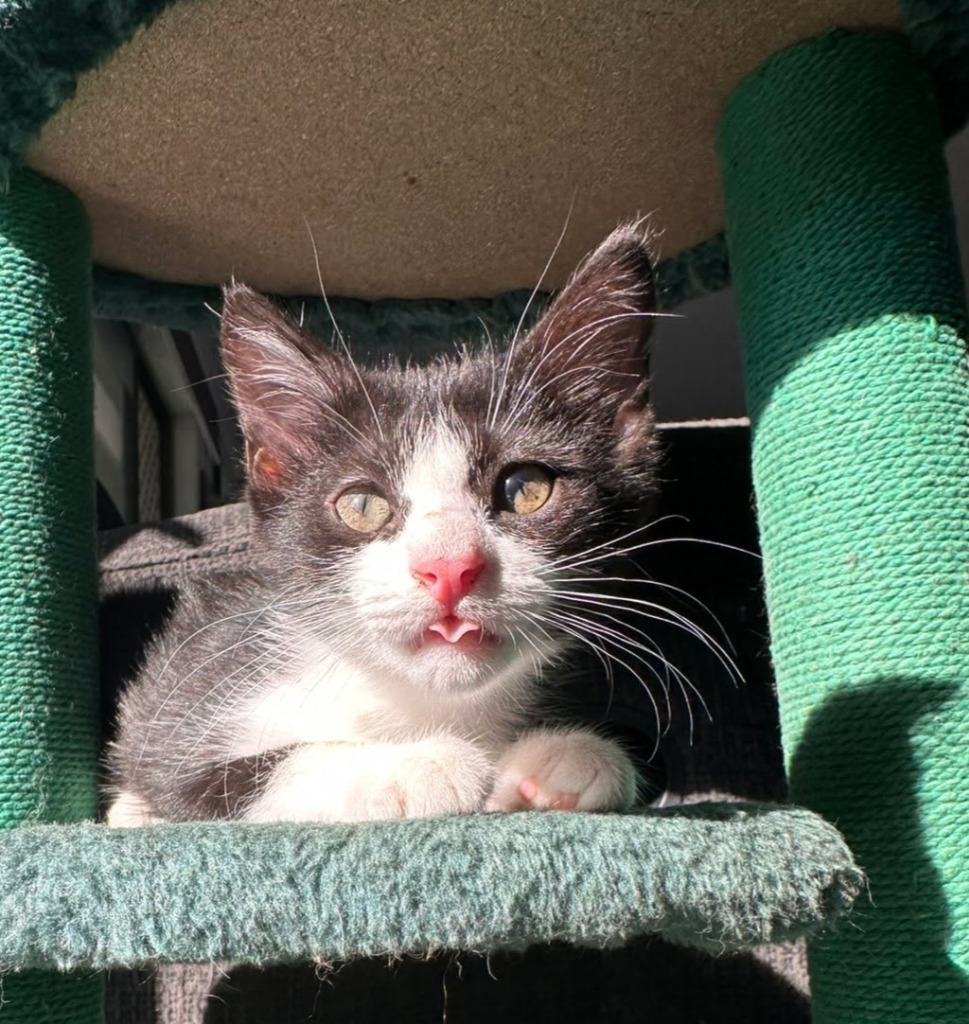 Meet Salem, this adorable black-and-white bundle of fluff is full of curiosity and charm. He’s been socialised with kids aged 4 and up — including a few rowdy teenagers — and has done really well! He’s also been getting used to life with a resident cat, though he’s still a bit cautious and prefers slow introductions for now.