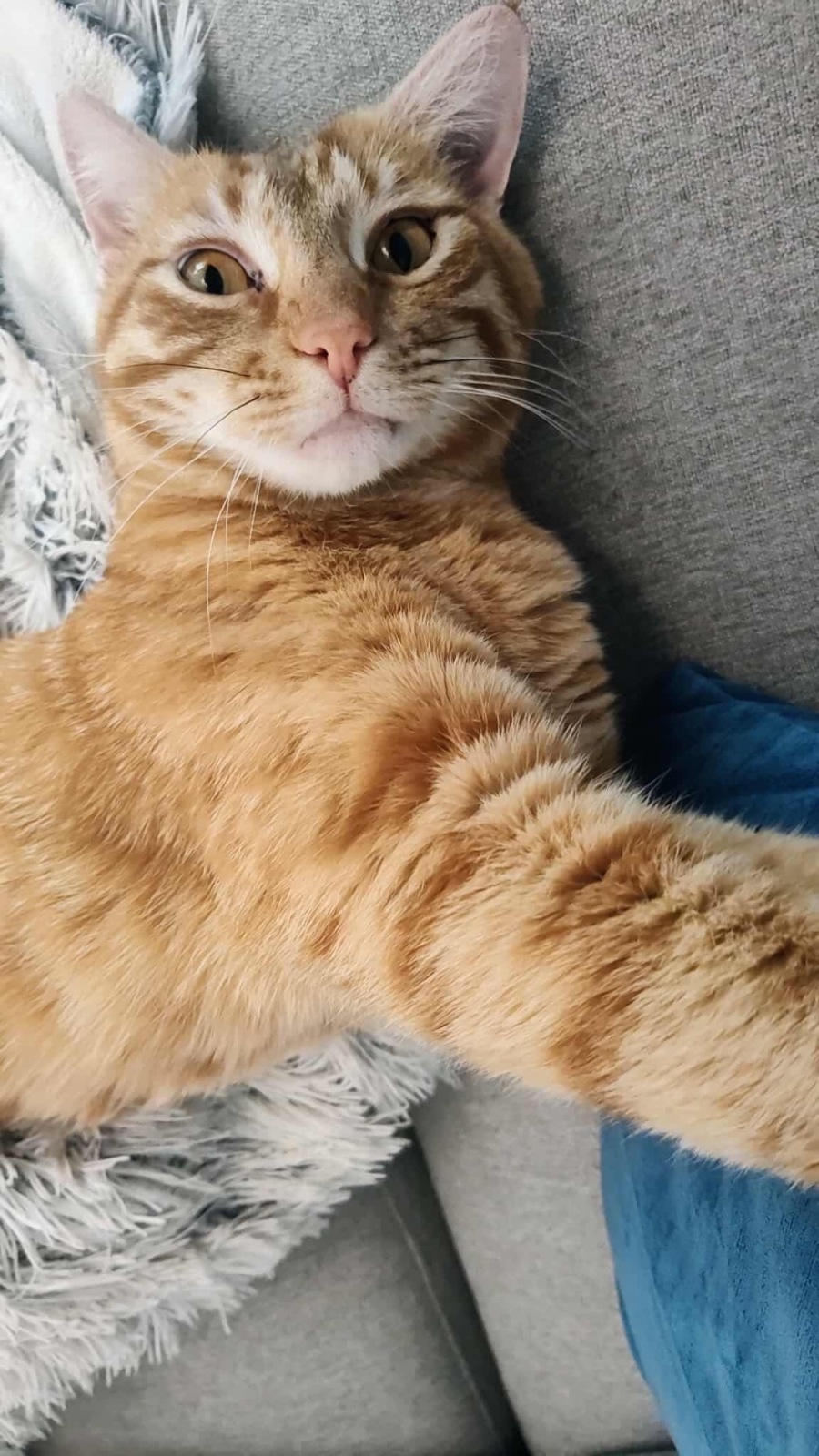 Ralphie will greet you with sweet head boops, curl up beside you on the couch, follow you from room to room, and even have little chats with you. He has the worlds biggest heart that is also just so grateful!