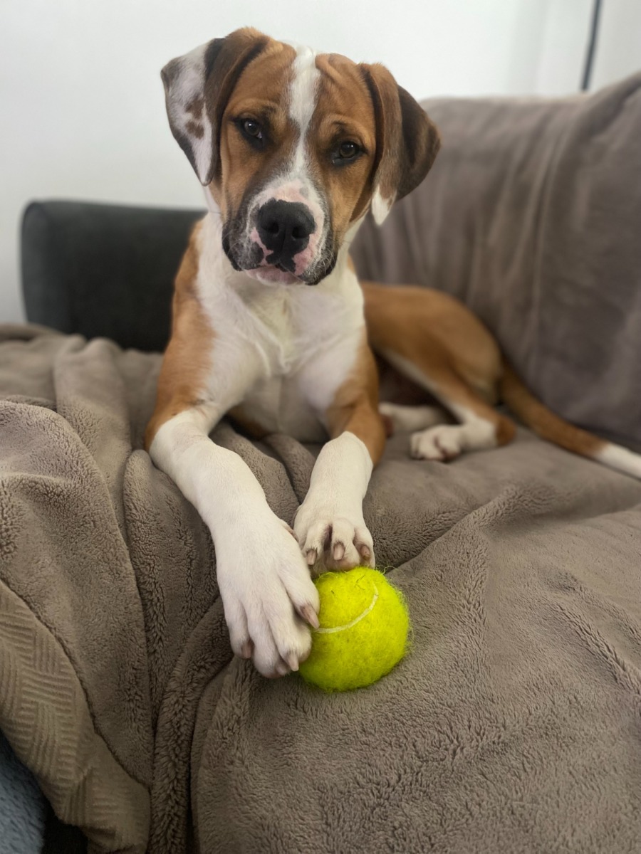 Say hello to Lunamae, an almost 2yr old Boxer X with a big heart and an even bigger personality! This loving, playful girl adores her walks, chasing balls, hanging out with her dog pals, and soaking up every cuddle she can get.