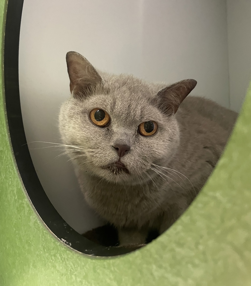 Pearl is a beautiful 7-year-old British Shorthair with a gentle and reserved nature. She can be quite shy, especially in new environments, but with time and patience, her quiet charm begins to shine through. Pearl enjoys her independence and can often be found engaging in solo play or simply relaxing in a cozy spot. She coexists peacefully with other cats and would do well in a calm, quiet home where she can feel safe and unhurried.