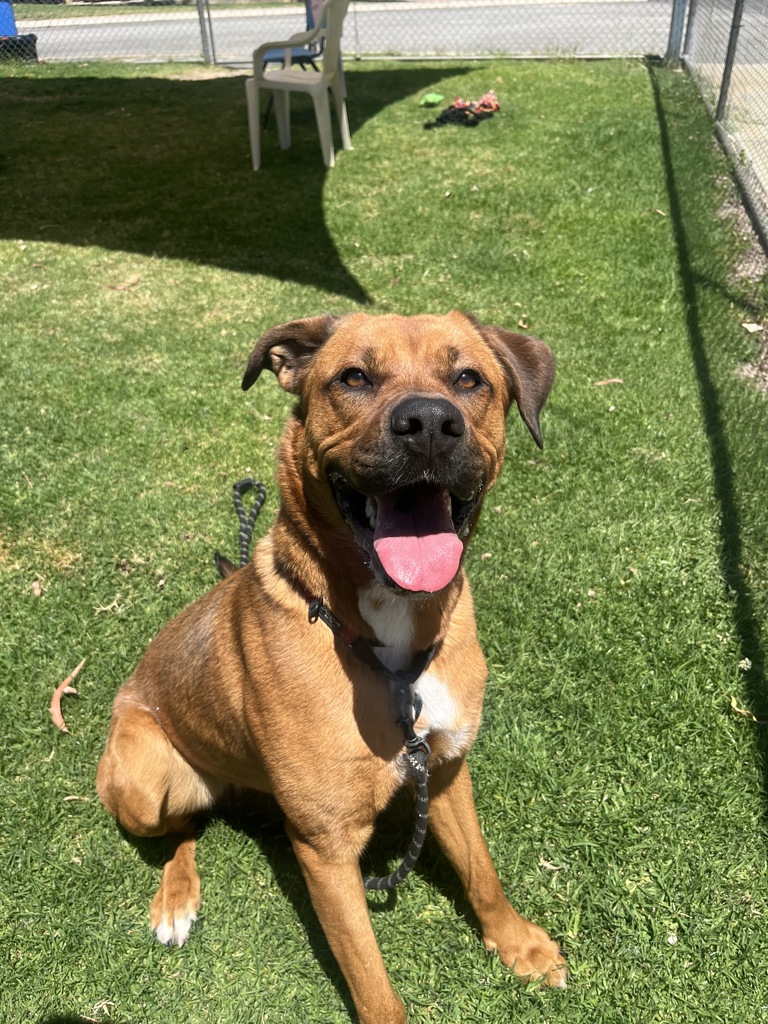 I'm a happy girl who loves cuddles, walks, and playtime. Because of my size (and my sometimes boisterous energy when I get excited!), I'd be happiest in a home with older children who can handle my big hugs and goofy zoomies. Don't worry - I'm a softie at heart and just want to be your best friend!
