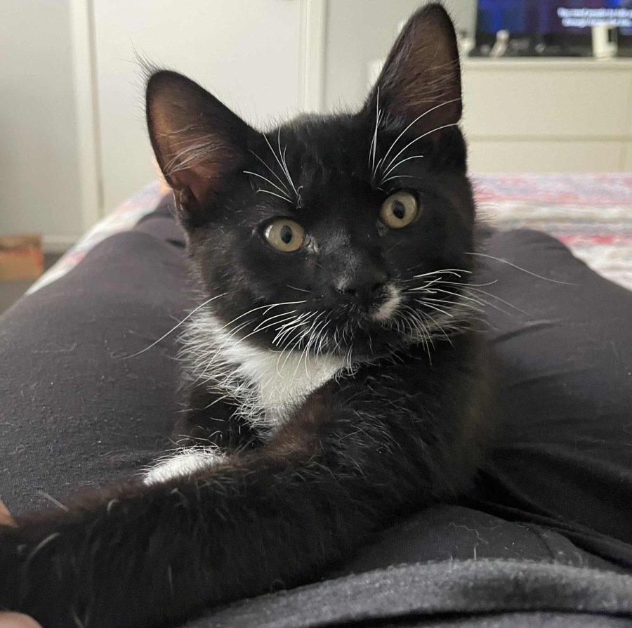 Meet Tux, a delightful kitten brimming with charm and playful curiosity. Tux's personality is as striking as his name, and he is always ready to win your heart with his friendly nature. With a coat as sleek as a tuxedo, he's as fashionable as he is lovable.