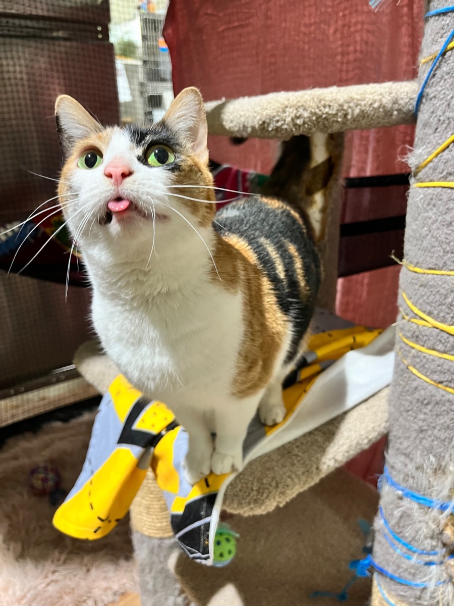 Pumpkin is as sweet as she is active, always on the lookout for new climbing challenges. Whether it's scaling a cat tree or finding the highest perch to sit on, Pumpkin is in her element when exploring vertical spaces. Her active nature means she is on the go more often than not, but she always has time for play and cuddles.