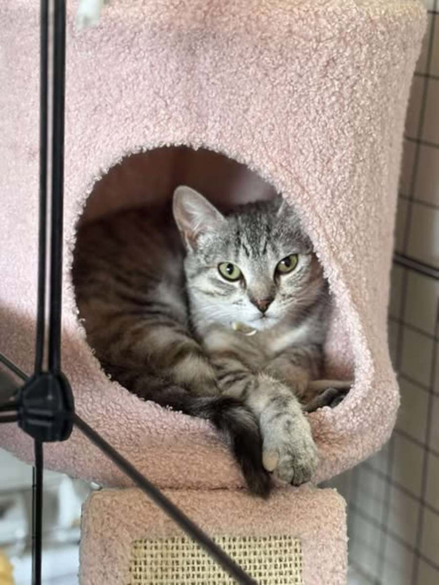 We’re still not sure exactly what colour she is - white tabby? cream swirl? Whatever she is, she’s a total stunner with a heart of gold. 💛
