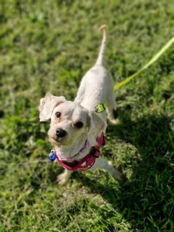 I'm a sociable little lady who gets along well with other dogs and has no known issues with other animals or children, making me a great fit for a variety of home environments. I thrive in a home where I'm included in daily life and have indoor access as part of the family—not just a visitor.