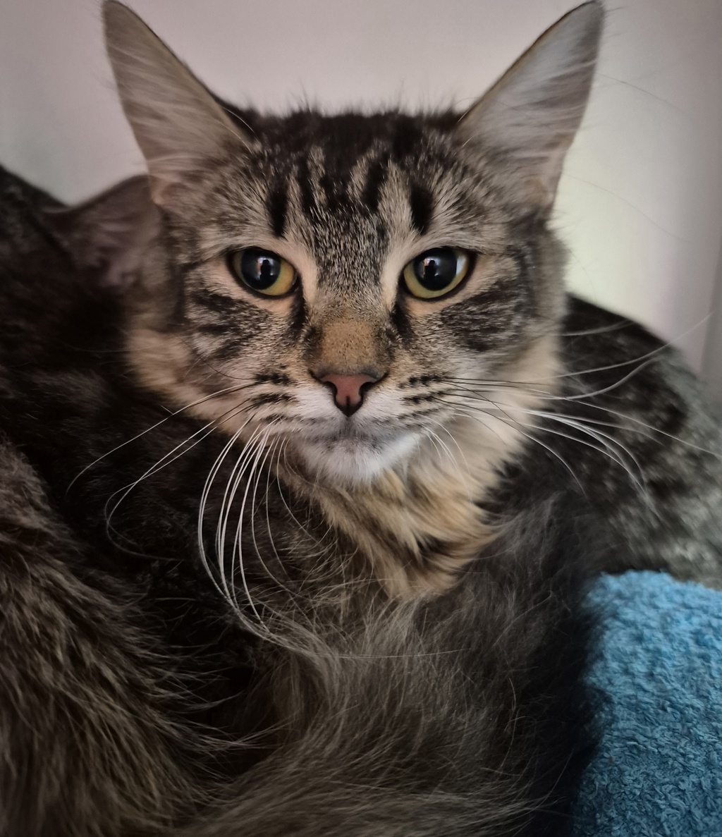 Once she feels comfortable, her loving nature blossoms. She adores gentle pats, cozy cuddles, and curling up on your lap for quiet companionship.