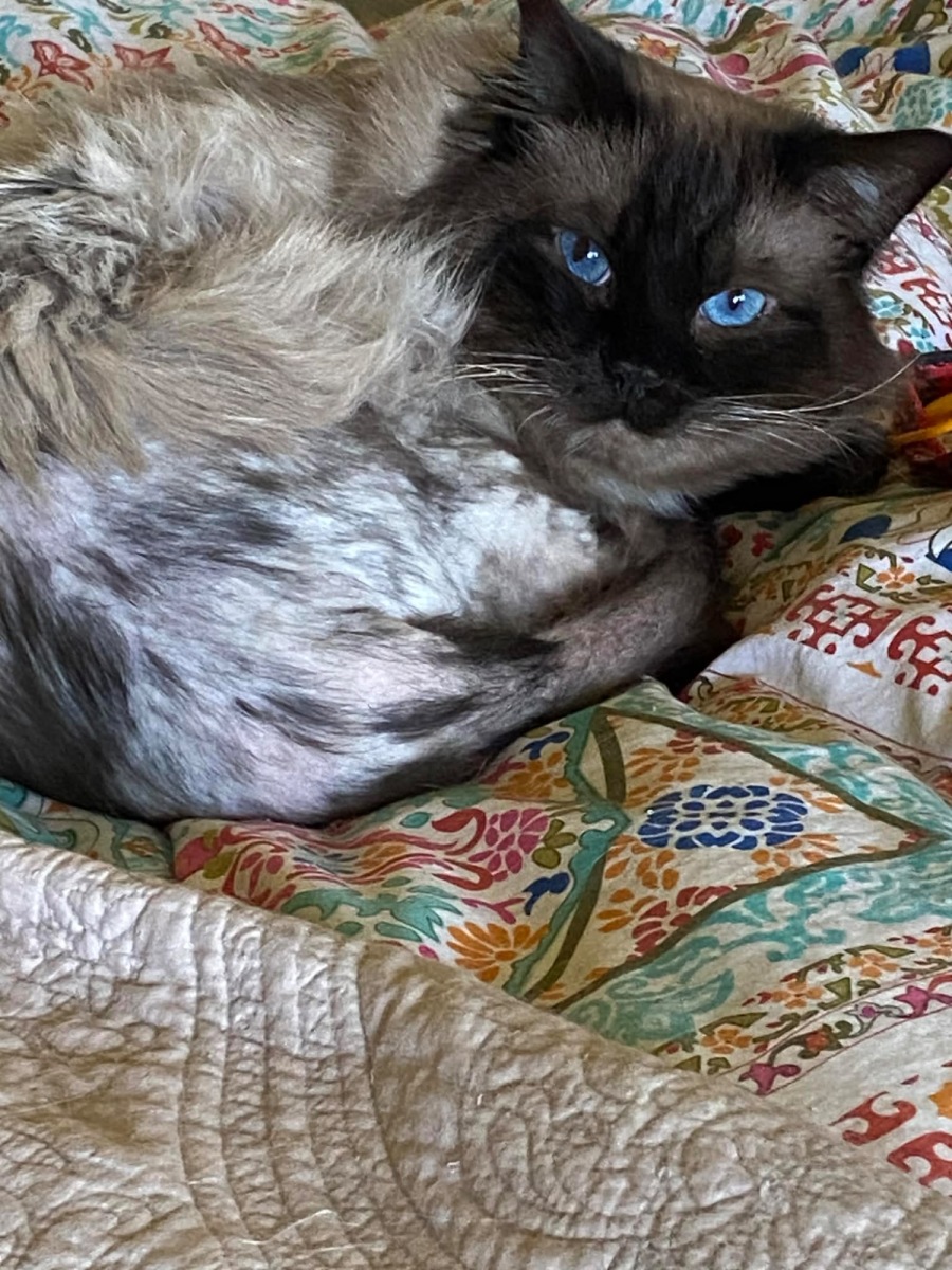 For the first eight years of his life, Dax knew only confinement. As a purebred Ragdoll, he was kept in a cage as a sire cat in a breeding operation — his only interactions were brief, transactional moments with other cats. When his "usefulness" ended, he was handed over to a vet to be euthanized.