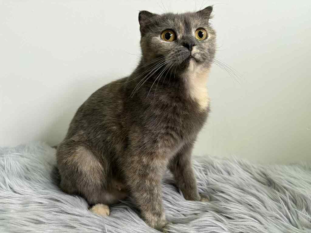 Swan is a gorgeous Scottish Fold with those signature folded ears and big, soulful eyes that will melt your heart 💖. She's not just beautiful, she's sweet, gentle, and full of charm! Swan loves cozy naps in sunny spots ☀️ and will happily keep you company while you relax at home.