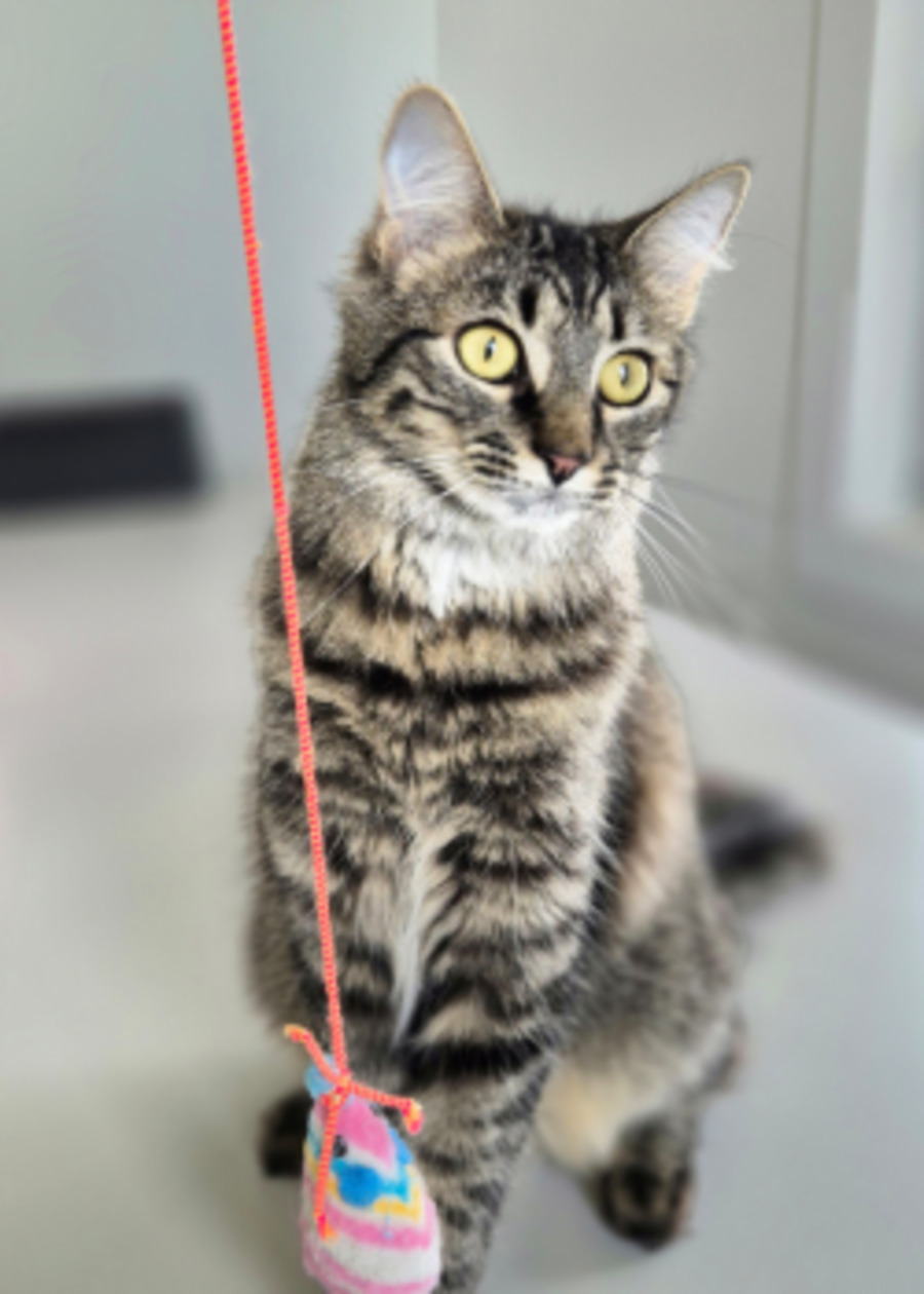 Shelly is everything you want in a friendly, affectionate kitty. She loves being with her humans — whether you’re chilling on the couch, working at your desk, or just relaxing with a book, she’ll be right by your side. She snuggles, purrs, and gives soft head-bonks when she wants extra attention.