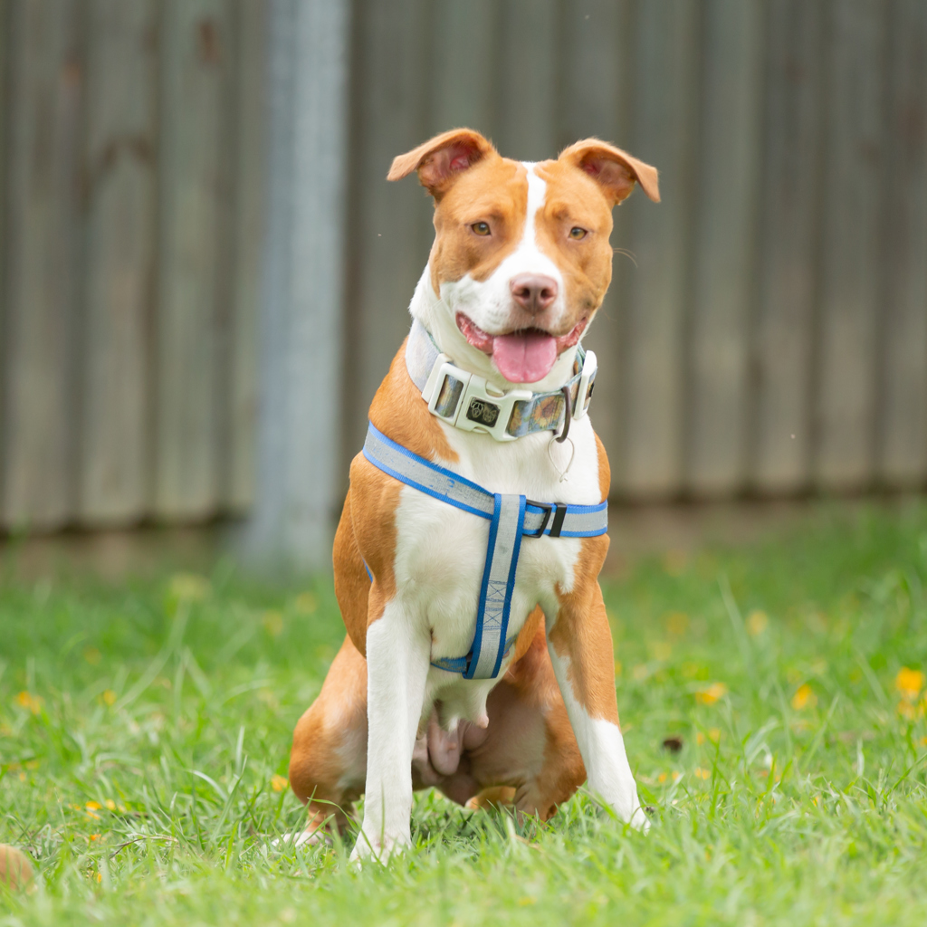 Peaches is a beautiful American Staffy with a heart as warm as her name suggests! This lovely girl is full of sweetness and charm, always ready to greet you with a happy smile and a wagging tail. Though she's still young at heart and can get a little excited when it's time for walkies or adventures, Peaches also knows how to settle down and enjoy some well-earned snuggle time afterwards. She adores being close to her people and will happily curl up beside you for a cozy nap.